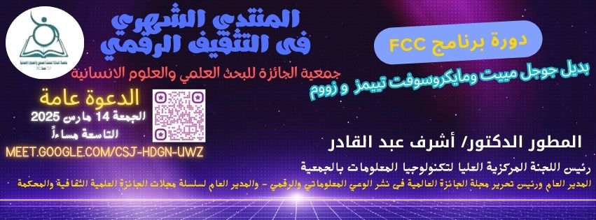 ننصح الجميع بحضور هذه الدورة المجانية حيث أن دورات وفعاليات المركز ستنظم علي هذه المنصة بإذن الله تعالي. (فضلًا يرجي الضغط على العنوان أعلاه)