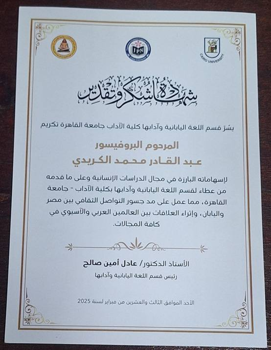 شكر خاص لمبادرة صناع الأثر - تخليد ذكري د. عبد القادر محمد الكريدي